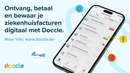 Vanaf januari 2026 kan u ervoor kiezen om uw ziekenhuisfacturen van het Sint-Andriesziekenhuis niet langer per post te ontvangen, maar digitaal via Doccle. Doccle is een gratis beveiligd online platform in België, een soort digitale brievenbus, waar u documenten zoals facturen, contracten en loonfiches van verschillende bedrijven kunt ontvangen, beheren en betalen.