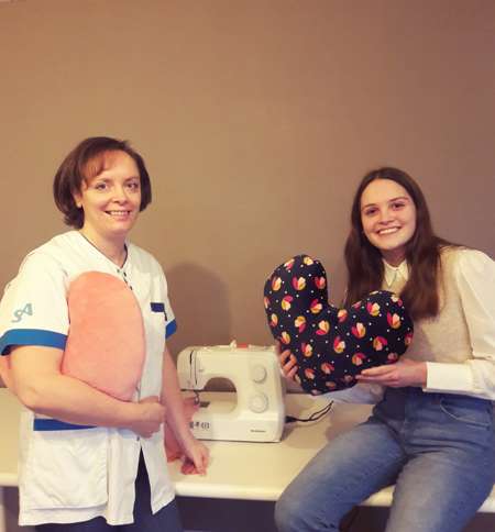 Wekelijks komen onze borstverpleegkundigen in contact met patiënten die de diagnose van borstkanker krijgen. Na een operatie van de borst en/of de okselklieren, is de behandelde plek extra kwetsbaar. Voortaan krijgen alle patiënten met borstkanker een hartenkussen cadeau. De vorm en het zachte materiaal van het hartenkussen zorgen voor een aangename houding waardoor de pijn verlicht wordt. Ook worden zwellingen, stuwingen en spanning in de schouder met het gebruik van het kussen verlicht.