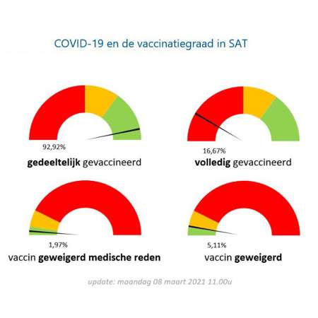 Sinds deze week heeft bijna 93 procent van de medewerkers en artsen van het Sint-Andriesziekenhuis het eerste covid-vaccin gekregen. Verwacht wordt dat deze groep tegen eind mei het tweede vaccin zal gekregen hebben en dus op dat moment volledig gevaccineerd is.