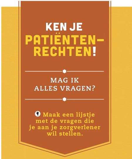 Dit jaar zetten we het recht op informatie in de kijker. Als patiënt heb je recht op alle informatie die je een beter inzicht geeft in je gezondheidstoestand en de (vermoedelijke) evolutie ervan. Je hebt recht op de informatie in een duidelijke taal. Dat betekent dat men rekening moet houden met je leeftijd, je opleiding, je psychische draagkracht, … Meestal zal je geïnformeerd worden door middel van een gesprek. Ook kan je vragen dat de informatie ook aan je vertrouwenspersoon wordt meegedeeld. We geven je graag nog enkele tips mee.