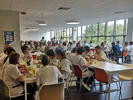 Veel volk vanmorgen in het restaurant! De reden? Gisteren was het Internationale Dag van de Verpleging. Naar goeie gewoonte breiden we dit in het Sint-Andriesziekenhuis uit naar de Dag van de Medewerker en mogen alle collega's aanschuiven voor een rijkelijk ontbijt naar aanleiding van deze dag.